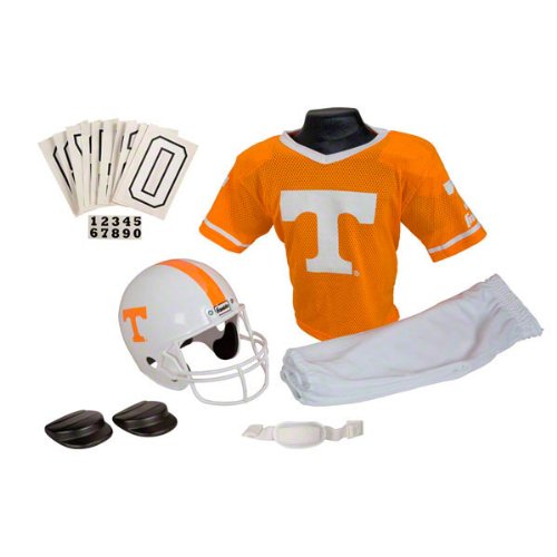 This authentic Tennessee Volunteers Deluxe Football Team Uniform Set is the perfect gift for any kid that has a favorite football team! Features a new molded helmet, upgraded mesh jersey, integrated shoulder pads. Makes a perfect for costumes! The iron-on number kit let's you use whatever your kid's favorite player's number is! Set includes:| ♦ Good Product ♦ ♦ Good Price ♦ ♦ Don't Be Hesitate To Get It ! ♦ |